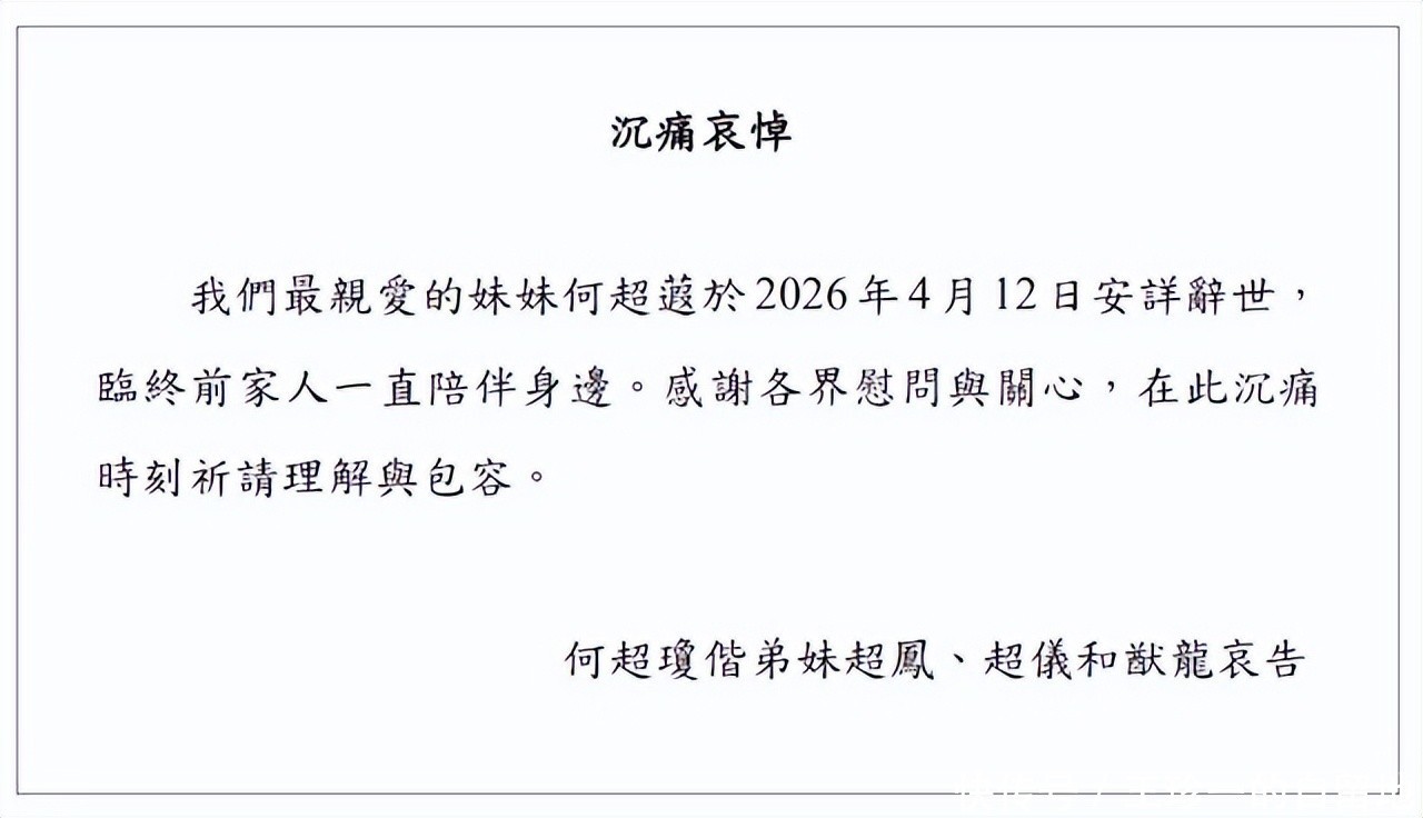 目前,何超蕸的家人已经发布了讣告。